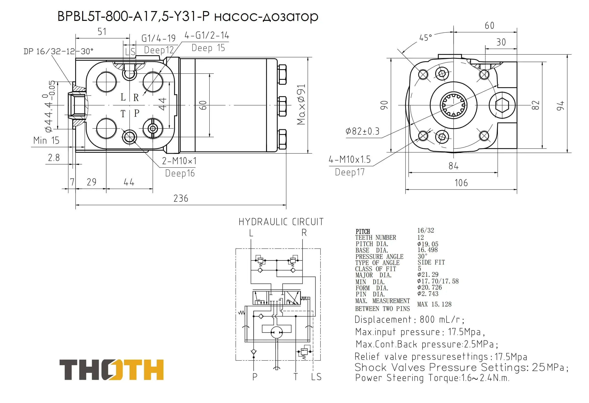 Насос-дозатор рулевого управления без встроенного предохранительного клапана, с внутренним шлицевым валом. Насос дозатор обладает эффектом усиления позволяющим легко вращать руль. Насос-дозатор устанавливается на трактор.
