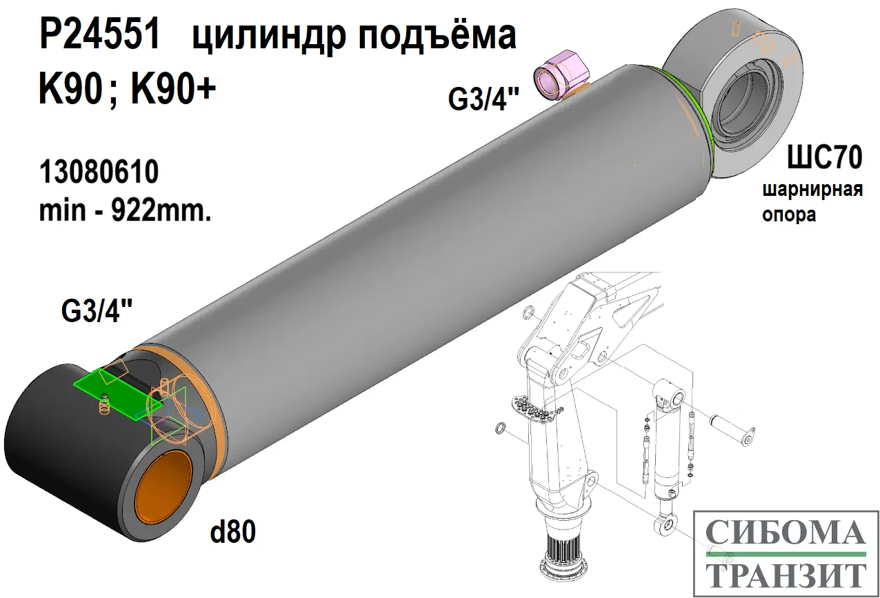 P24551(ШС) гидроцилиндр подъёма стрелы