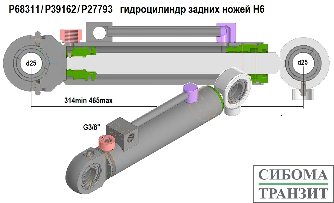 P68311 / P39162 / P27793 гидроцилиндр задних сучкорезных ножей