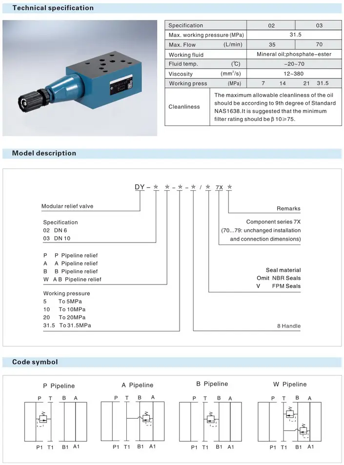 Предохранительные клапана DY-02 P-10-8/70 электромагнитный клапан