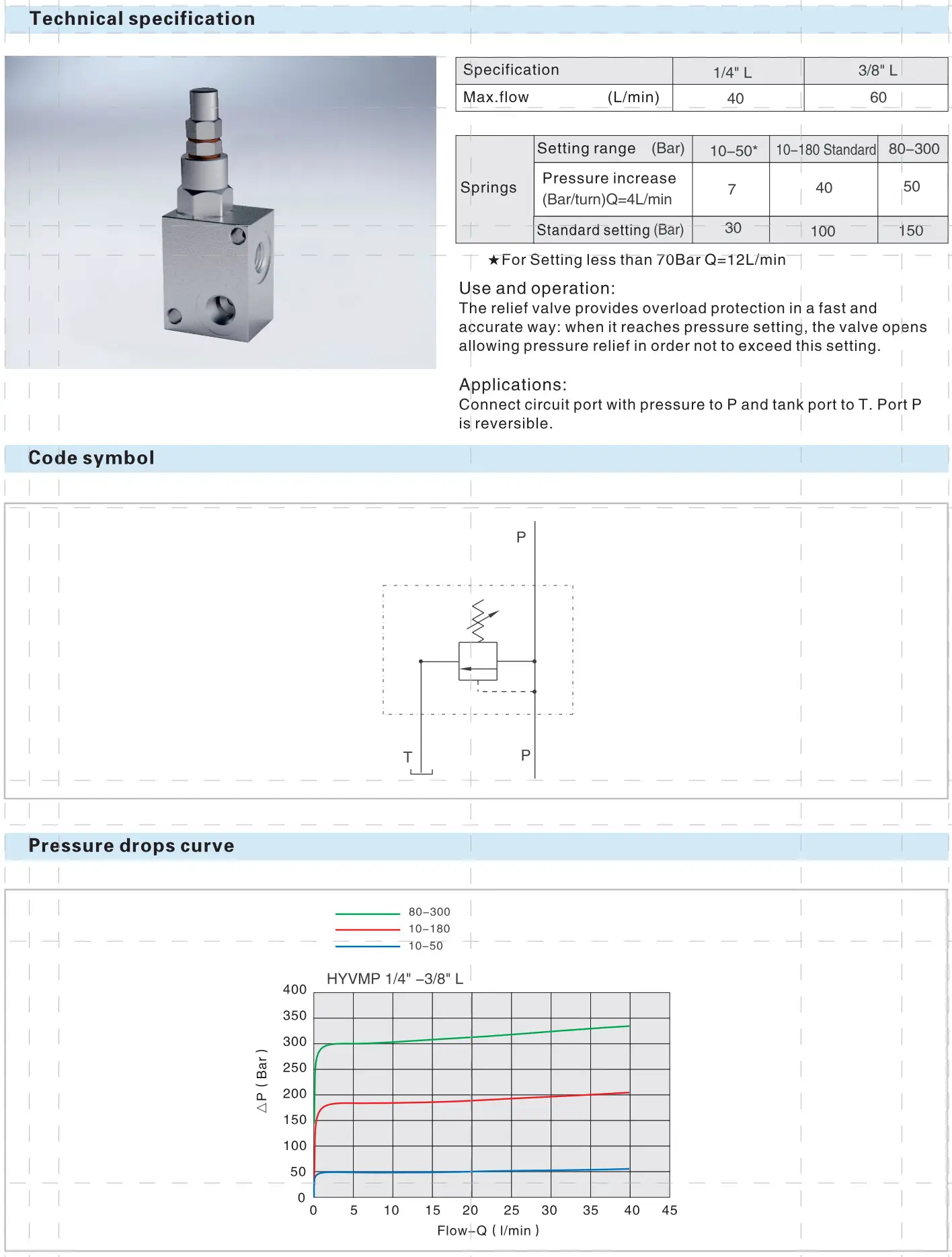 Предохранительные клапаны HYVMP 1/4" L (80-300 bar) Предохранительный клапан