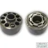 Диск из металла с центральным отверствием и каналами от поверхности контакта с блоком цилиндров до корпусных каналов нагнетания и всасывания рабочей жидкости .