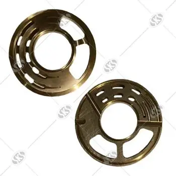 Диск из металла с центральным отверствием и каналами от поверхности контакта с блоком цилиндров до корпусных каналов нагнетания и всасывания рабочей жидкости .