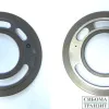 Диск из металла с центральным отверствием и каналами от поверхности контакта с блоком цилиндров до корпусных каналов нагнетания и всасывания рабочей жидкости .