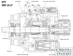Корпус из стали, закреплённый на насосе, с втулками из стали переменного диаметра с отверстиями, направляющими управляющий поток рабочей жидкости в нужный канал при позиционировании золотника, связанного с наклоном качающего узла. Служит для сохранения потребляемой мощности привода путём изменения величины потока при переменной нагрузке.