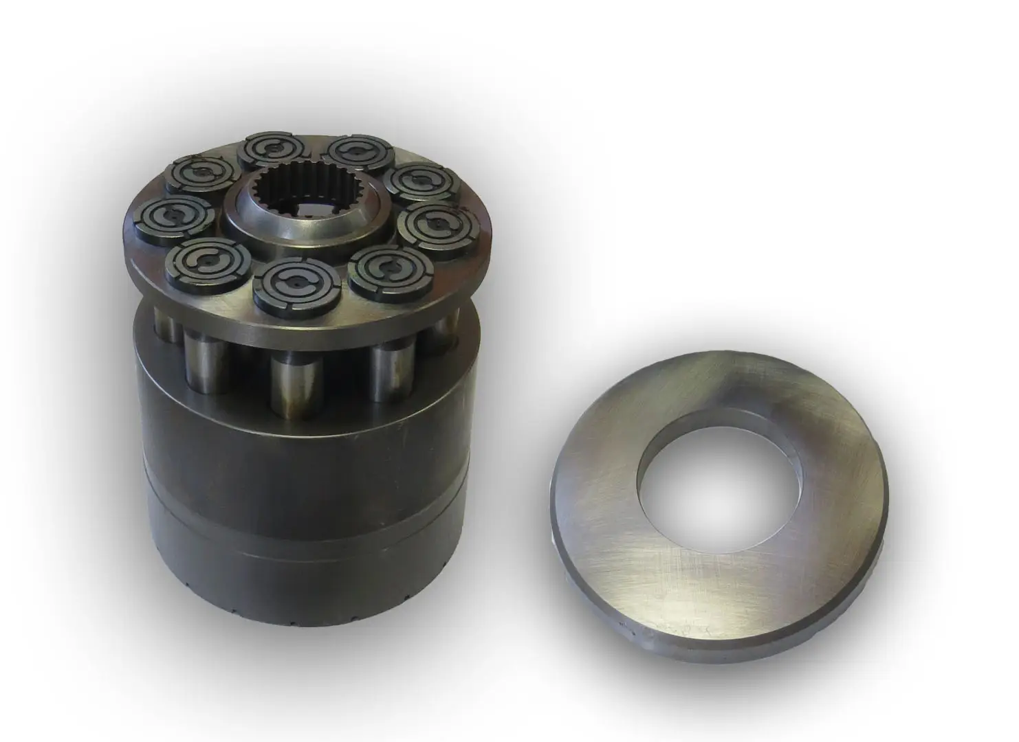 Блок,прижимная пластина,поршни-9шт (powder) шарнир,стойки-3шт,пружина блока,стопорное кольцо,упорное кольцо-2шт,опорная плита.