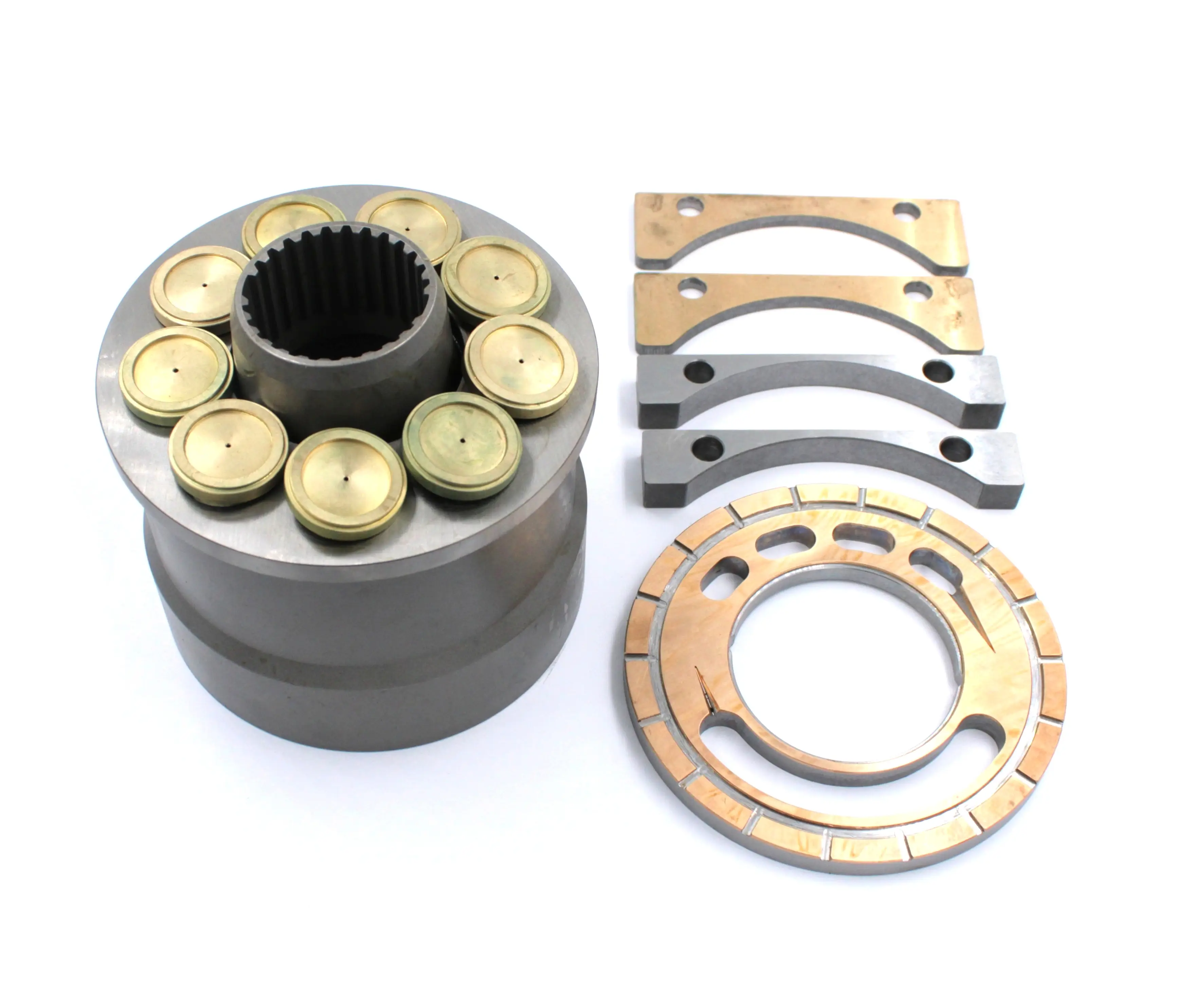 Блок цилиндров, поршни, прижимная пластина, упоры 2 шт, прокладки 2шт, распределитель левый