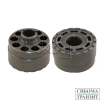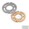Диск из металла с центральным отверствием и каналами от поверхности контакта с блоком цилиндров до корпусных каналов нагнетания и всасывания рабочей жидкости .