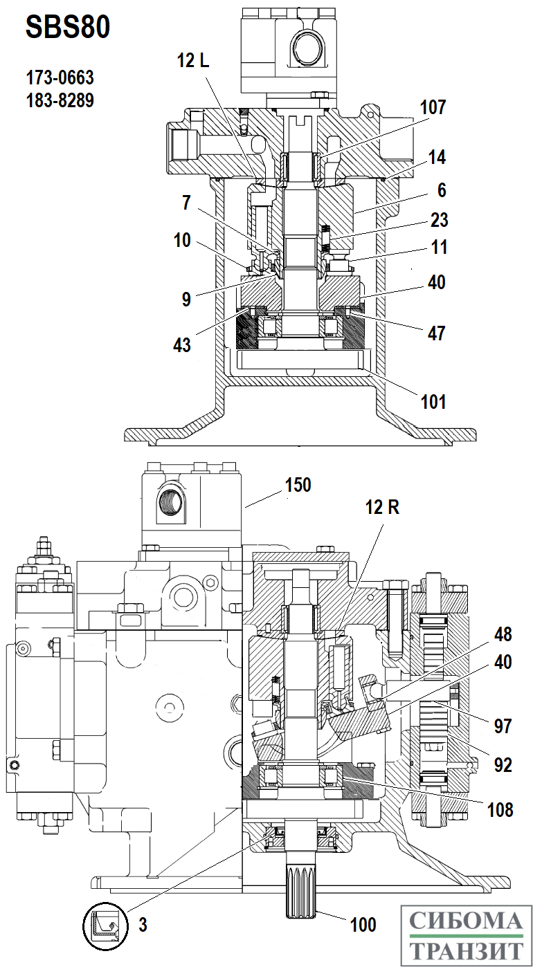 Ремкомплект вспомогательного насоса. Предназначен для создания потока рабочей жидкости для управления, подпитки и охлаждения основного насоса. Устанавливается на его корпусе и связан шлицами с его приводным валом. Состоит корпуса, удерживащего валы шестеренной пары и пластины скольжения торцев шестерён.