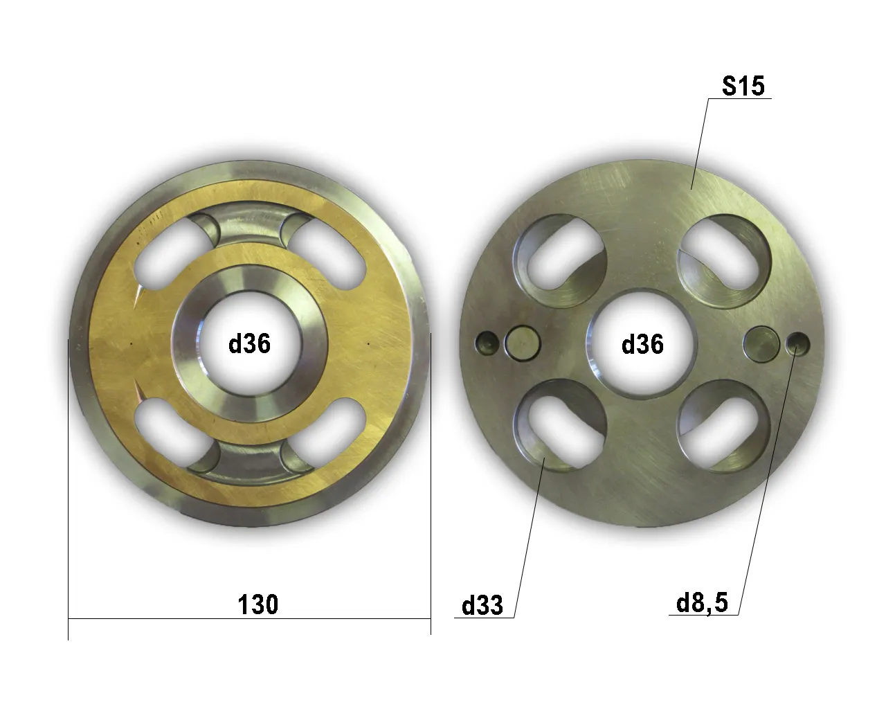 Диск из металла с центральным отверствием и каналами от поверхности контакта с блоком цилиндров до корпусных каналов нагнетания и всасывания рабочей жидкости .