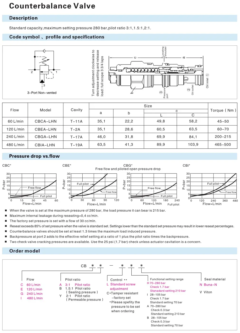 Тормозные клапаны CBGA-LHN Тормозной (уравновешивающий) клапан