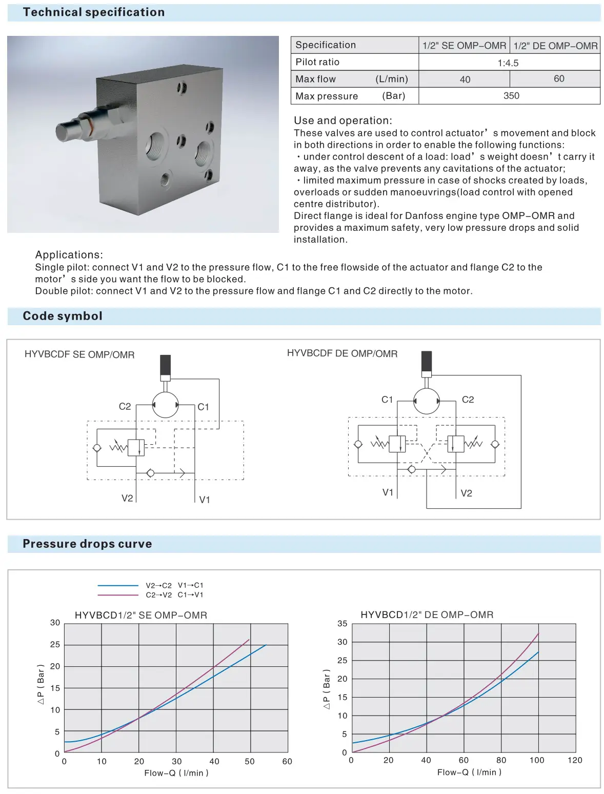 Тормозные клапаны HYVBCDF DE OMP-OMR Тормозной клапан