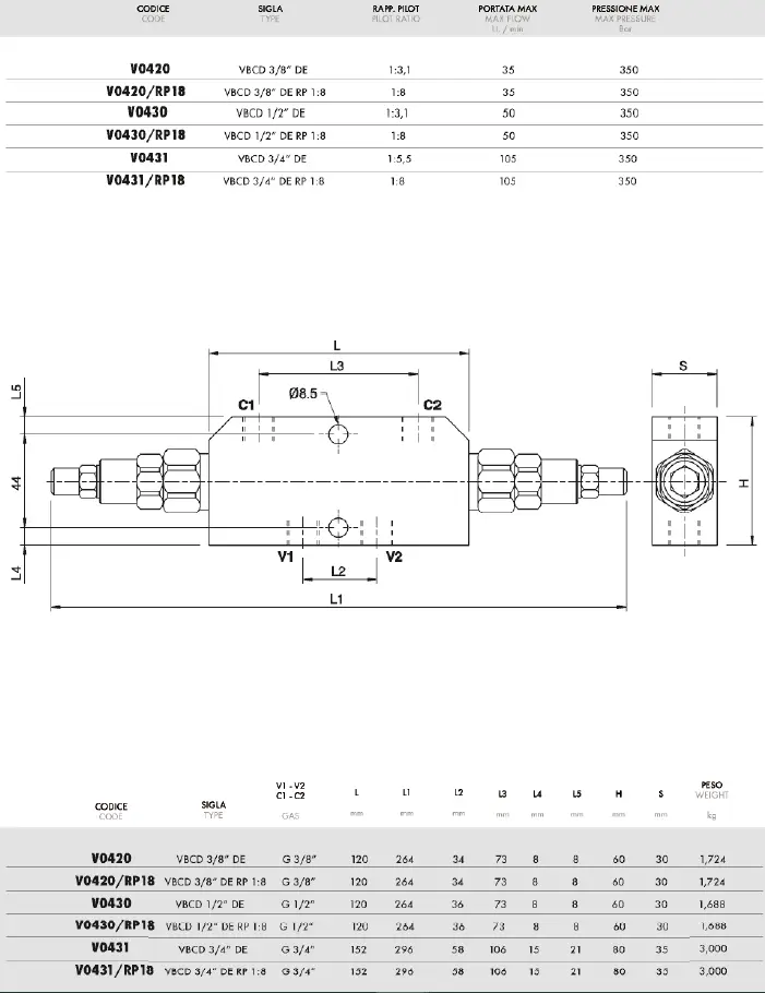 Тормозные клапаны VBCD-G3/8-DE тормозной двухсторонний клапан