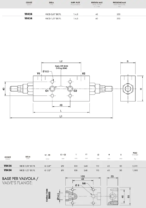 Тормозные клапаны VBCD-G3/8-DE/FL-28/22 тормозной клапан